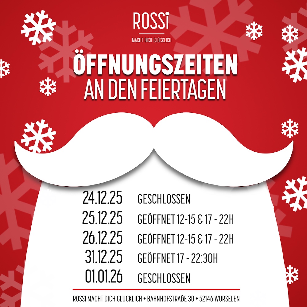 Das Rossi in Würselen vereint moderne Küche mit stylischer Innenarchitektur. Wir legen größten Wert auf Frische und Qualität – sowohl bei unseren Zutaten als auch bei der Zubereitung. Gerne berücksichtigen wir dabei Ihre besonderen Wünsche.
